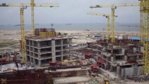 The Marina District of the new city will have views of the ocean from one side and of the entrance to the port of Lagos on the other.